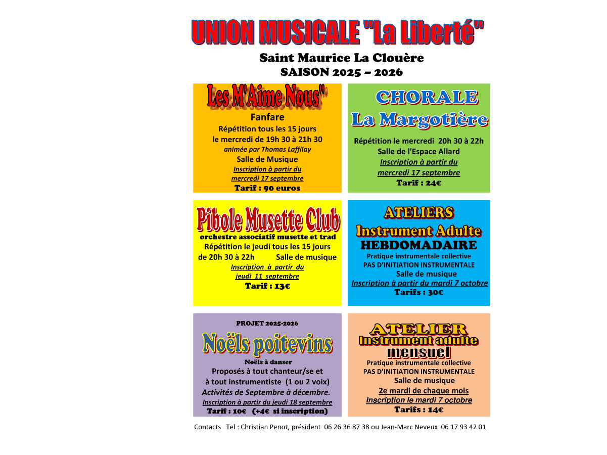 Les activités proposées cette saison 25-26 - Voir le Bulletin la Pibole de sept-oct 2025